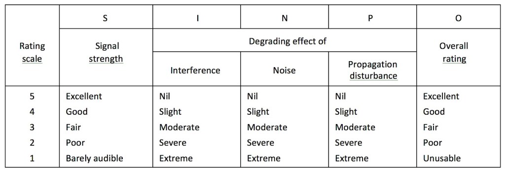 The R-S-T system is used by amateur radio operators, shortwave listeners, and other radio hobbyists to exchange information about the quality of a radio signal being received. The code is a three digit number, with one digit each for conveying an assessment of the signal’s readability, strength, and tone.[1][2] The code was developed in 1934 by Amateur radio operator ArthurContinue reading “The RST Report” - The SINPO (or SINFO) Report